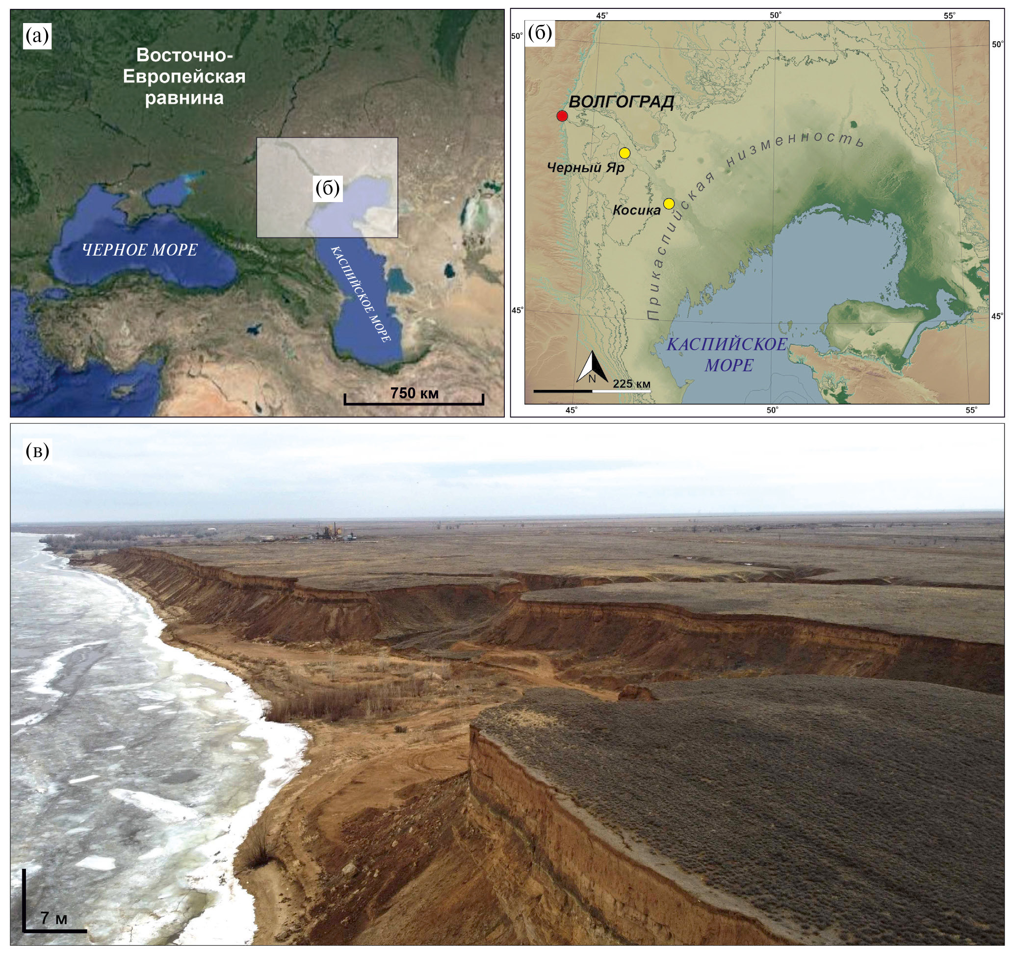 Одним из наиболее интересных районов для изучения истории криогенеза на юге Восточно-Европейской равнины является Прикаспийская низменность. Работы по реконструкции природных условий для Прикаспийской низменности выполнялись многими авторами (Шкатова, 1975; Янина, 2012; Tudryn et al., 2013; Свиточ, 2014). Здесь, в многочисленных естественных обнажениях долины р. Волги, вскрываются различные по форме и генезису структуры предположительно криогенного генезиса (Васильев, 1961; Москвитин, 1962; Шкатова, 1975). Указанные структуры встречаются как в субаэральных отложениях (лёссово-почвенные серии), так и аллювиальных и эстуарно-морских. В последние годы наметился существенный прогресс в характеристике новейших отложений региона и реконструкции палеогеографических условий различных этапов плейстоцена, связанный с применением комплекса современных палеогеографических методов (Болиховская и др., 2017; Költringer et al., 2020; Költringer et al., 2021; Zastrozhnov et al., 2020; Kurbanov et al., 2021).