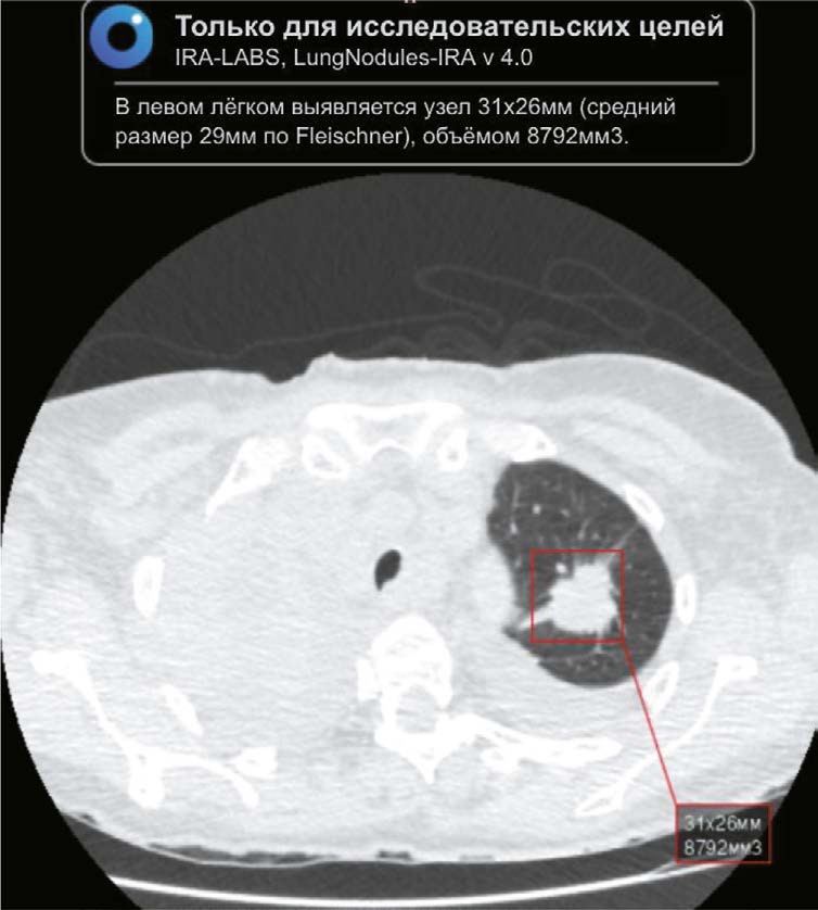 结论。使用人工智能分析胸腔器官计算机断层扫描结果显示肺结节检测的高效率,包括在COVID-19的背景下,这证实其用于早期发现那些可能被遗漏的随机肺结节的前景。