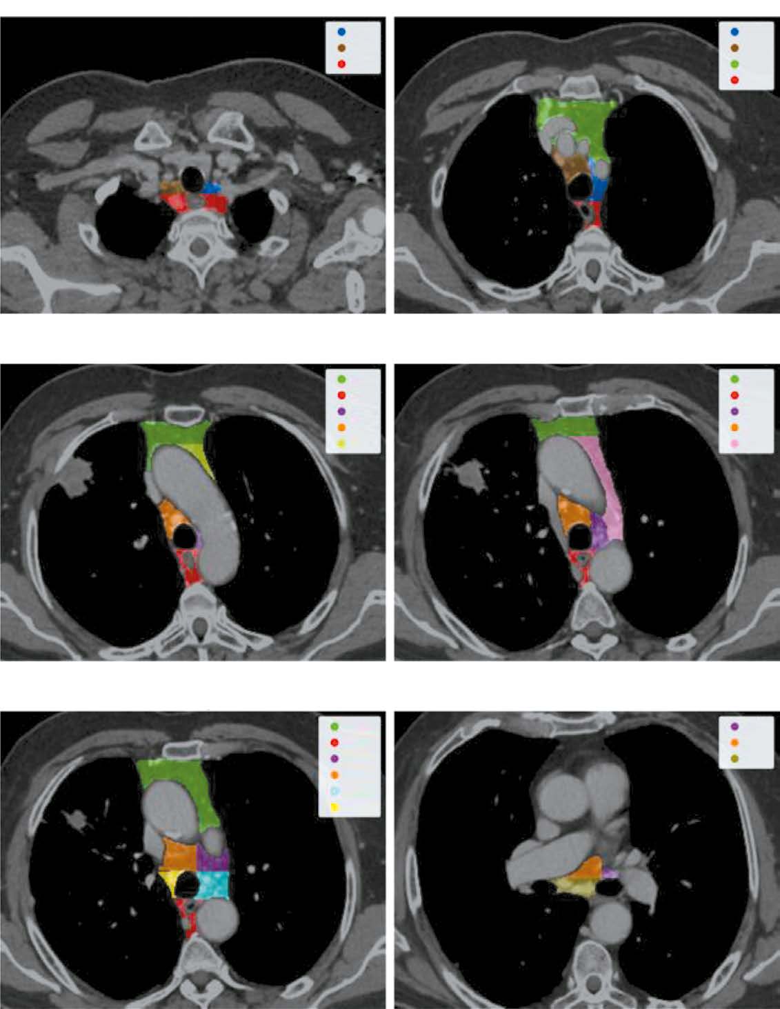 AIM: To develop a local data trained and validated algorithm for segmenting each mediastinal lymph node in chest computed tomography (CT) and assessing the probability of its involvement in metastasis.
