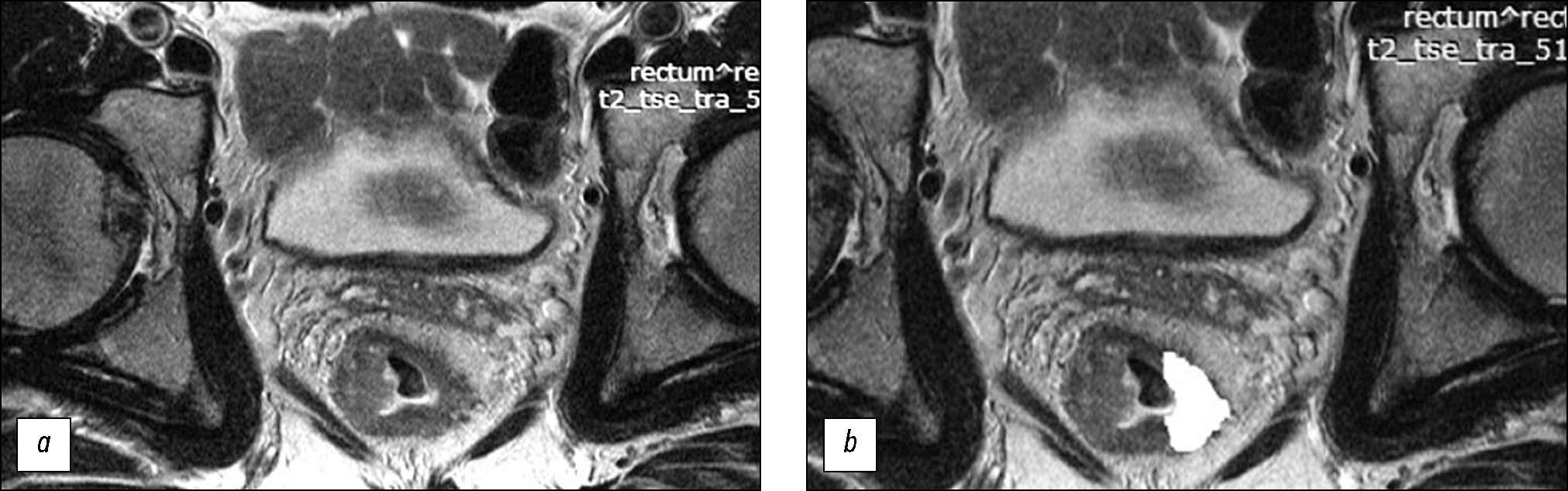 CONCLUSIONS: Texture analysis of the primary T2-WI of tumors in patients with locally advanced rectal cancer allows for predicting the efficacy of neoadjuvant chemoradiotherapy with moderate diagnostic efficiency. The results suggest good prospects for further research in this area.