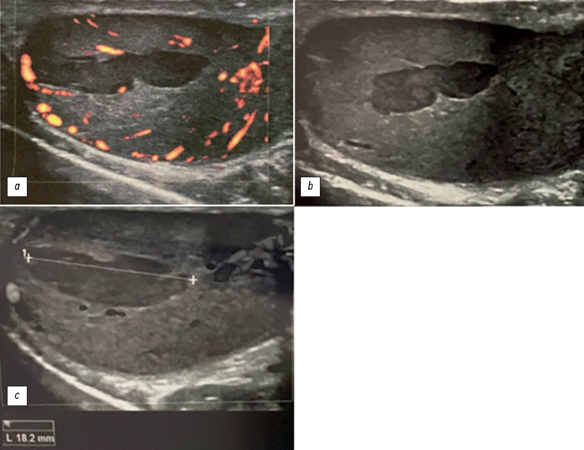 在极少数情况下,急性附睾炎会伴有睾丸缺血和梗塞。 通过临床症状和影像学检查结果很难区分附睾炎和睾丸扭转。在本文中,我们努力扩大用于快速准确鉴别诊断的放射治疗诊断方法的数字图像库。本病例强调了全面放射检查的重要性,以及采用跨学科方法做出准确诊断的必要性。一名24岁的男子因两周前出现左侧睾丸剧烈疼痛而来到医院就诊。据患者称,已经有一段时间出现射精疼痛、性交疼痛、阴囊发红/肿胀、生殖器发炎、恶寒、腹股沟淋巴结肿大、排尿困难和阴囊疼痛。在泌尿科医生的建议下,接受了超声检查和核磁共振成像检查。 影像学检查显示左侧睾丸缺血。根据病史,怀疑患有慢性睾丸附睾炎。由于缺血范围有限,患者无需进行左侧睾丸切除术。 接受了药物治疗。此外,患者还被诊断为左侧精索静脉曲张。对不同磁共振成像序列获得的图像进行了仔细研究。本文描述了一例罕见的睾丸附睾炎病例,这是附睾炎的一种潜在危险并发症。为避免严重后果,当阴囊突然剧烈疼痛时,应考虑到这种并发症的可能性。此案例的描述,能够优化患者的管理方法,并避免不必要的干预。