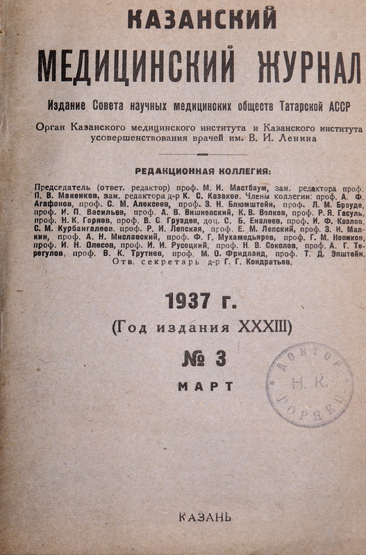 Заседания медицинских обществ. Хирургическое общество АТССР (Казань). Заседание 15 октября 1936 года