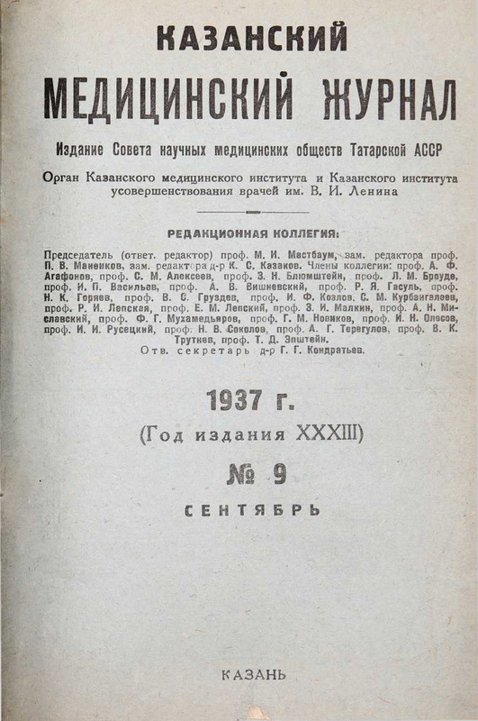 Казанский медицинский журнал. 1937;33(9):1081-1090