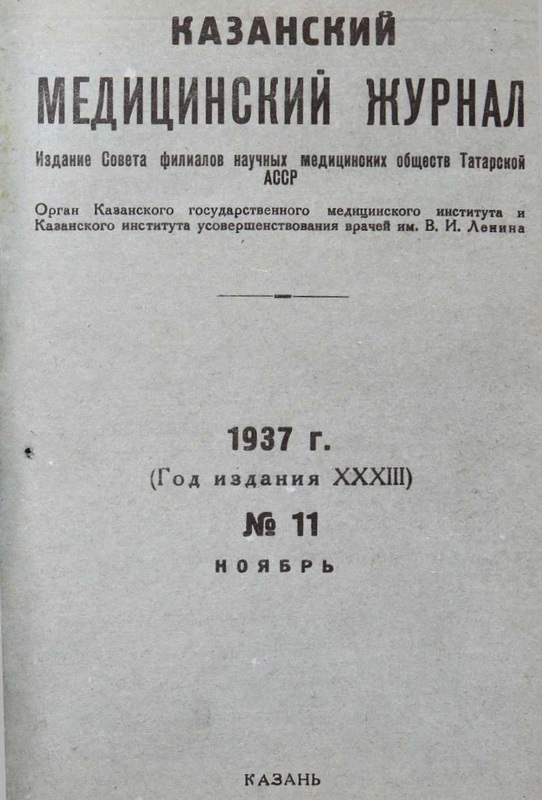 Заседания медицинских обществ. Хирургическое общество ТАССР. Заседание 15 июня 1937 года