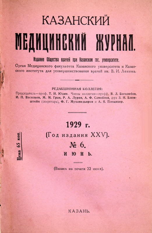 Многоуважаемый редактор. Межсъездная комиссия по классификации туберкулезных заболеваний, образованная по постановлению IV Туберкулезного съезда, обращает Ваше внимание на то, что в № 2 Казанского медицинского журнала за 1929 г., в статье М.И. Ойфебаха „О классификации туберкулезных процессов неправильно передано содержание доклада В. С. Хольцмана на эту тему на Всесоюзном туберкулез ном съезде в Тифлисе—в пункте, касающемся значения каверны в оценке стадия легочного туберкулеза (стр. 152, нижние 9 строк) и неверно изложено относящееся сюда постановление Съезда.