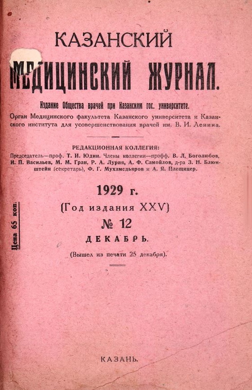 Society of Physicians at Kazan University. Surgical section. Meeting on October 16, 1929