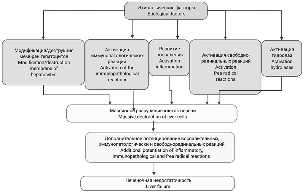 Рис. 2. Общий патогенез печеночной недостаточности / Fig. 2. General pathogenesis of liver failure