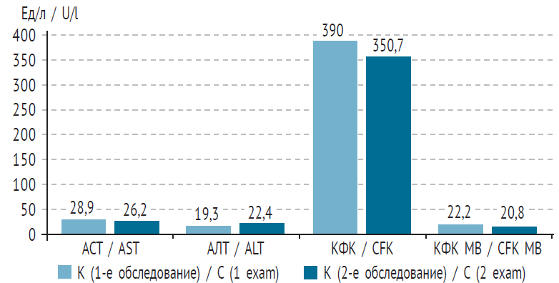 Примечание. *Различия относительно первого обследования статистически значимы при р ≤ 0,05. Note. * The difference with the first examination is statistically significant at р ≤ 0,05. | ||||