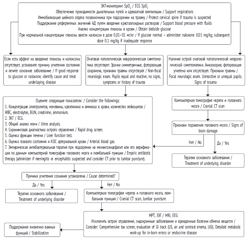 Algorithm of screening diagnosis and therapy coma in children [7, with changes of authors]