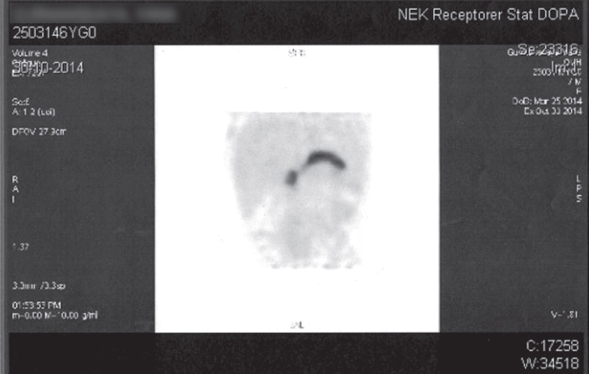 Рис. 1. Результаты позитронно-эмиссионной и компьютерной томографии с радиофармпрепаратом 18F*-ДОПА