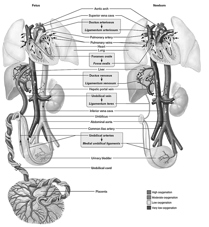 Рис. 1. Кровообращение плода (а) и новорожденного ребенка (b) [10]