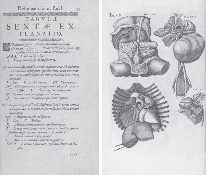 Рис. 10. Страницы книги И. Фабрициуса «De formato foetu», 1600 г.: страница 23 и иллюстрации к ней