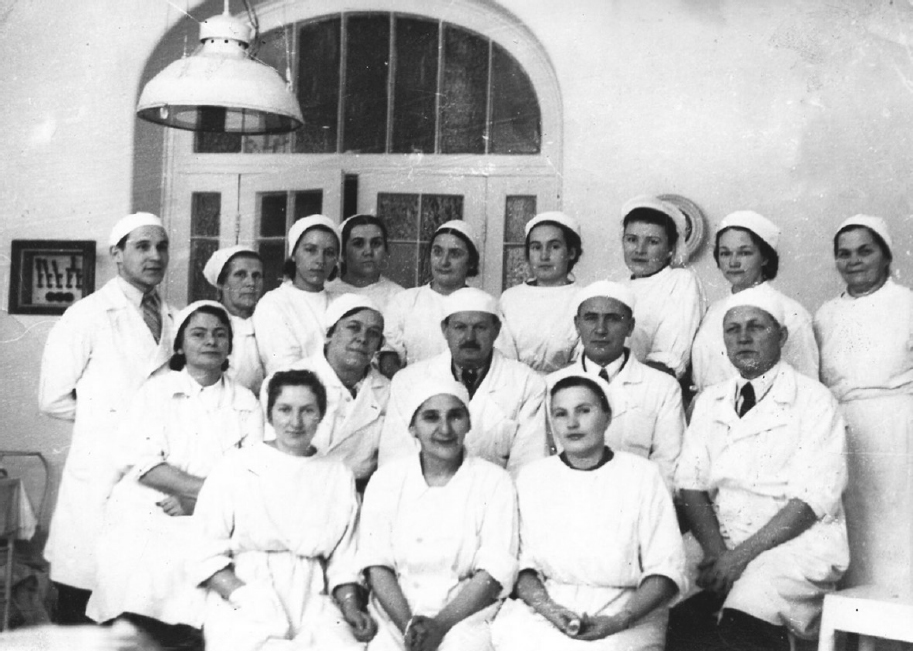 Fig. 8. Clinical resident F.H. Kutushev (third row from the left) at the Department of Pediatric Surgery of Leningrad Pediatric Medical Institute, 1950