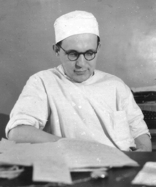 Fig. 9. Postgraduate student F.H. Kutushev at the Department of Thoracic Surgery of the Military Medical Academy, 1951