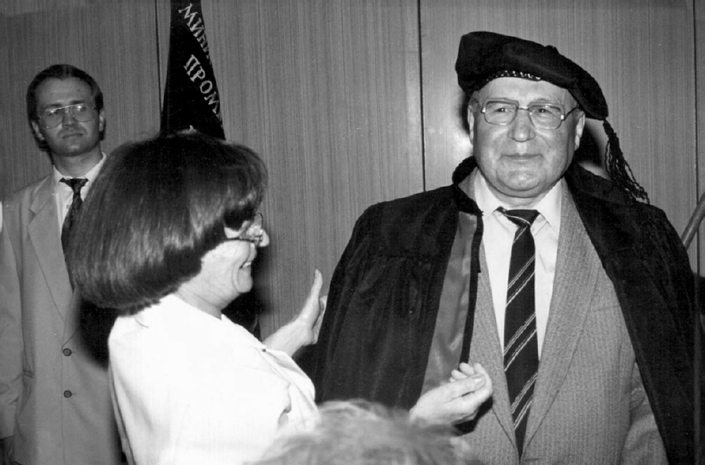 Fig. 13. Honorary member of the Academic Council of the St. Petersburg State Pediatric Medical University F.H. Kutushev (right), 1999
