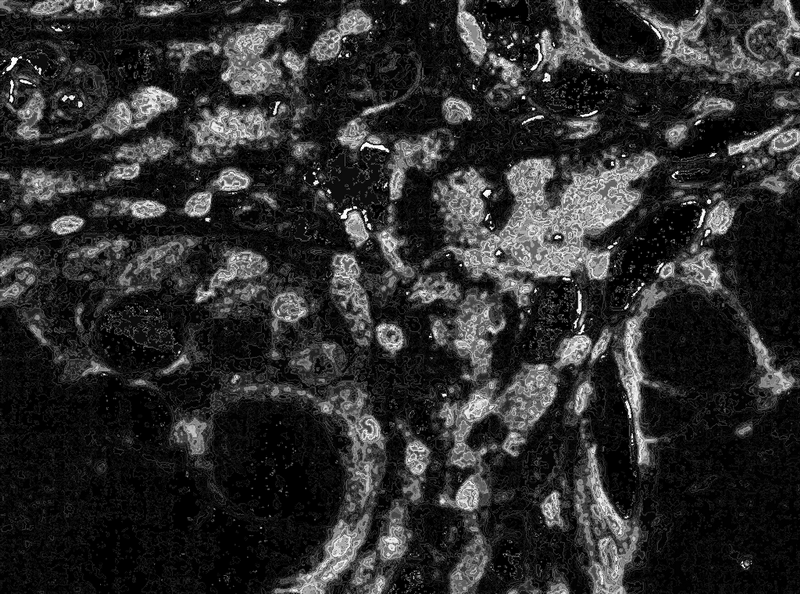 Морфометрическое исследование осуществлялось с помощью системы компьютерного анализа микроскопических изображений, состоящей из микроскопа Leica DMR, цифровой камеры Leica DC300, персонального компьютера на базе Intel core i3 и программы Leica QWin. В каждом случае анализировалось 5 полей зрения при увеличении × 400, определялась относительная площадь экспрессии сигнальных молекул (см. рис. 1), которая представляет собой отношение площади, занимаемой иммунопозитивными клетками, к общей площади клеток в поле зрения, выражаемое в процентах. При статистической обработке использовали T-критерий Фишера – Стьюдента (Statistica 9, StatSoft).