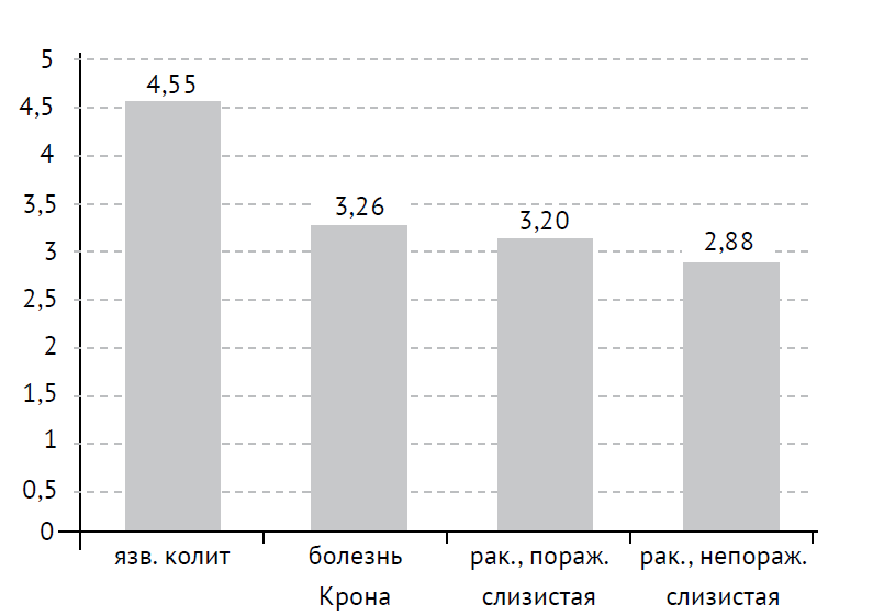 Язвенный колит | 4,549 | 1,067 | 0,333** | 0,056 |