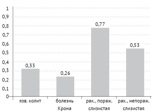 Болезнь Крона + язвенный колит | 3,773 | 0,476 | 0,284*** | 0,029 |